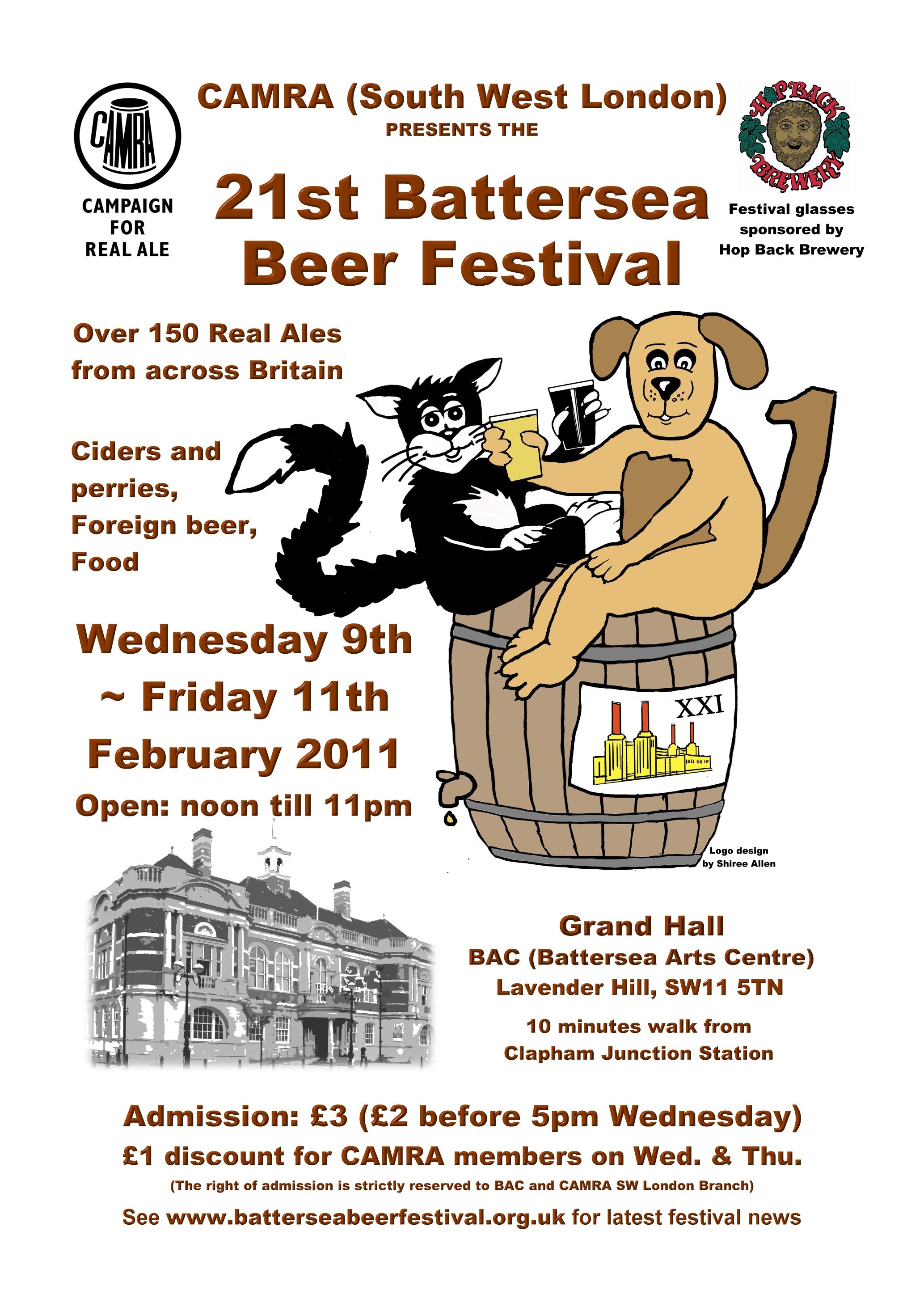 Please check back here regularly for all the latest Battersea Beer Festival news or you can find us on Facebook or follow us on Twitter, @CAMRAswl.